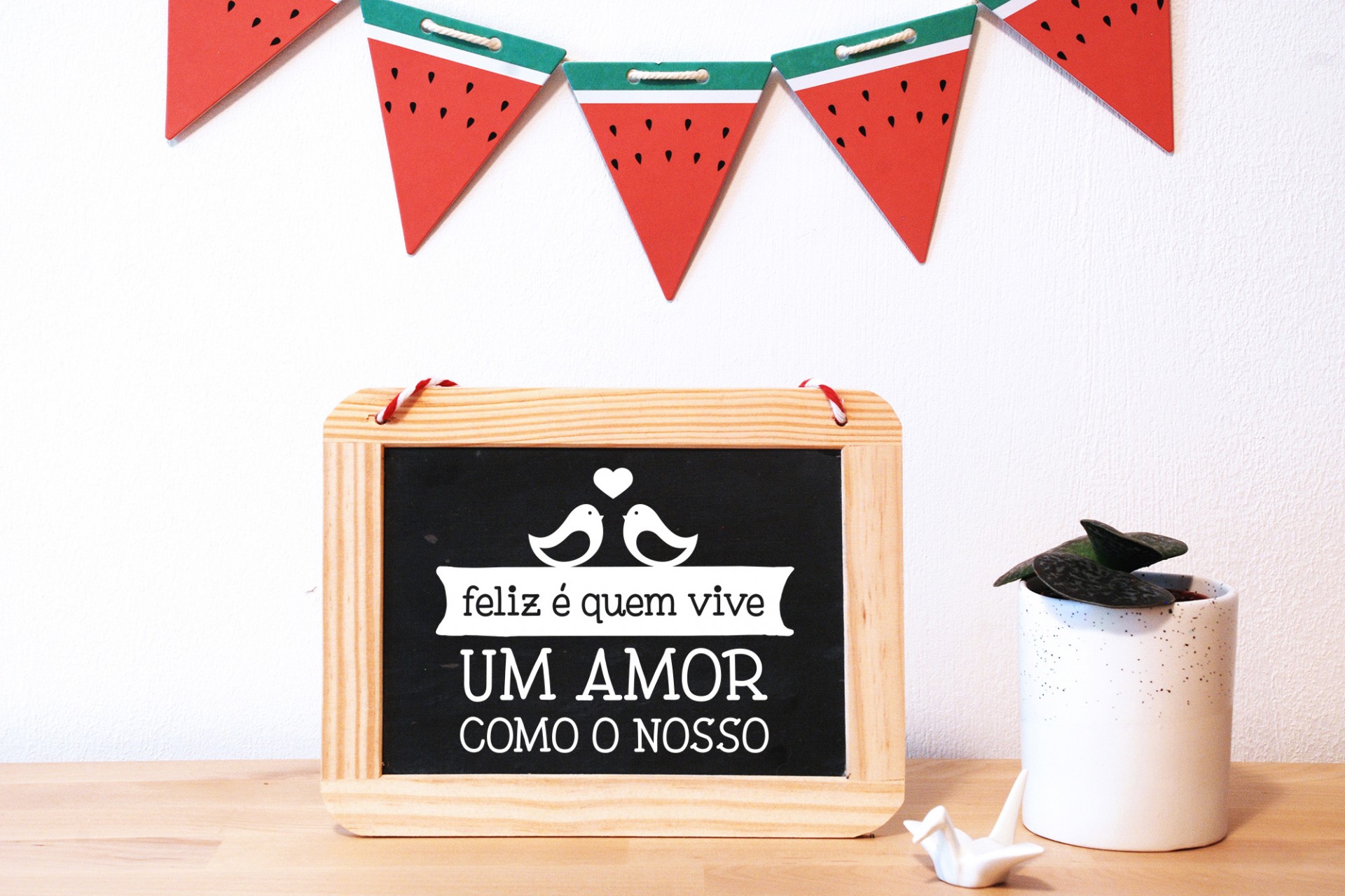 Nota: As frases não são escritas a giz, pelo que não existe o risco de se apagarem. Como se trata de um artigo de origem artesanal, podem ocorrer variações na cor da moldura de madeira e na própria lousa da ardósia.