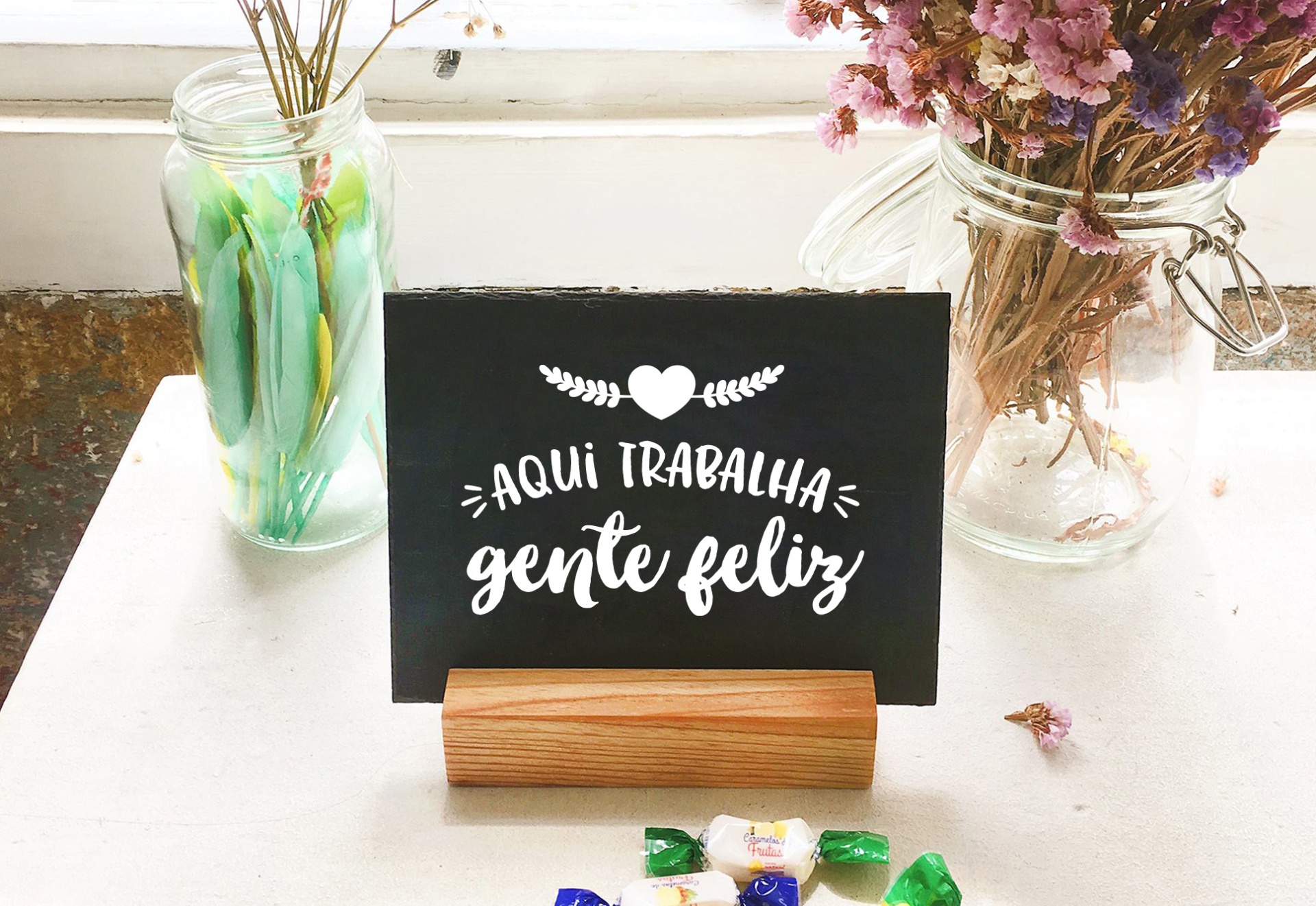 Nota: As frases não são escritas a giz, pelo que não existe o risco de se apagarem. Como se trata de um artigo de origem artesanal, podem ocorrer variações na cor da base de madeira e na própria lousa da ardósia.