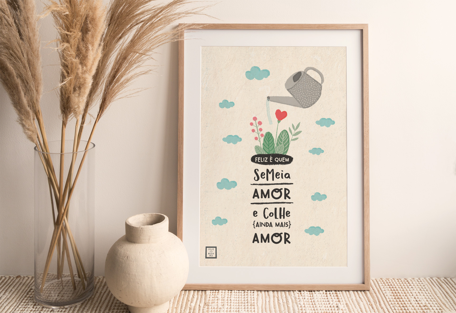 Art print . Semeia Amor 5,00 € Desconto de %. IVA incluído. Partilhar Formato A5 (15x21cm) A4 (21x30cm) A3 (30x42cm) Comprar Contactar Ilustração original do projecto Feliz é quem diz® Impresso em papel de aguarela 200g. e disponível em vários formatos. Opções de compra: 1/ Formato A5 (15x21cm) em papel para colocar em moldura (moldura não incluída) 2/ Formato A4 (21x30cm) em papel para colocar em moldura (moldura não incluída) 3/ Formato A3 (30x42cm) em papel para colocar em moldura (moldura não incluída)