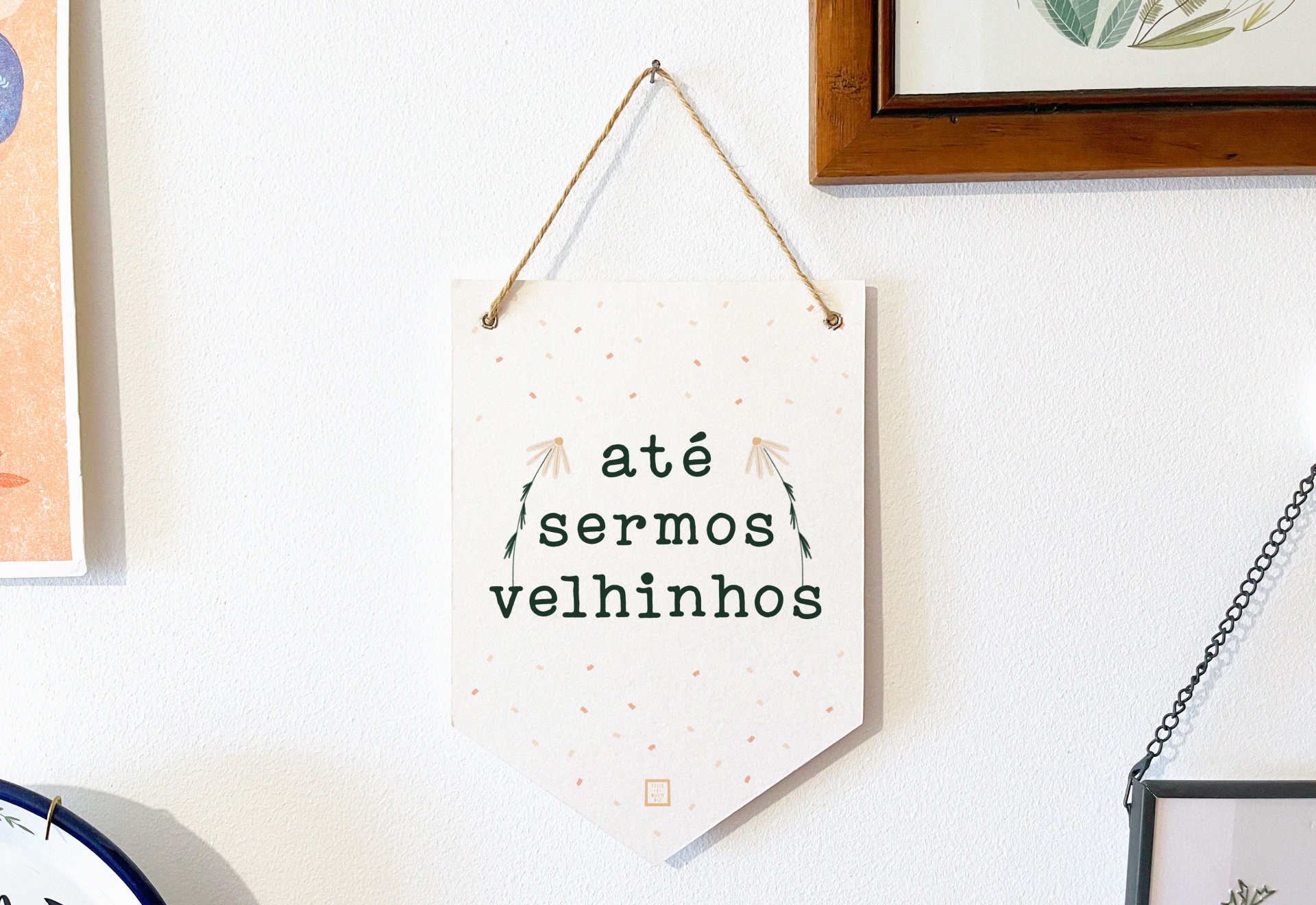 Bandeirola . Até sermos velhinhos 10,00 € Desconto de %. IVA incluído. Partilhar Comprar Contactar Design original do projecto Feliz é quem diz® Medida da bandeirola: 15x21cm Bandeirola com base de papel madeira branco, com ilustração na frente, ilhós e fio para pendurar. A cor do fio é apenas ilustrativa e poderá variar.