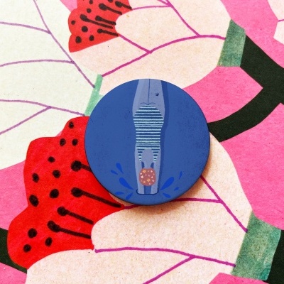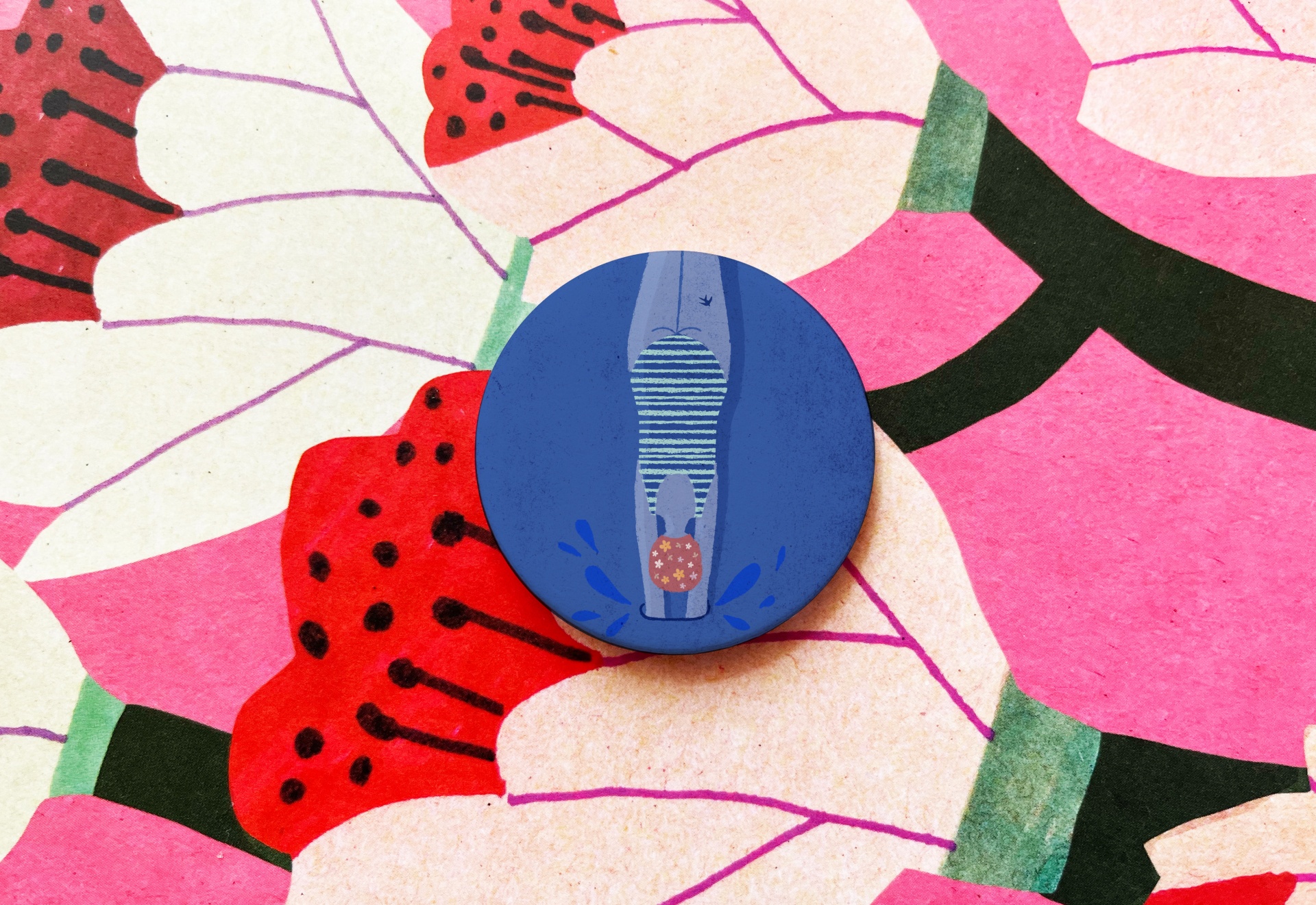 Crachá mini . Mergulho 2,00 € Desconto de %. IVA incluído. Partilhar Comprar Contactar Crachá com ilustração original do projecto Feliz é quem diz® com alfinete no verso Medida: 4,5 cm de diâmetro.
