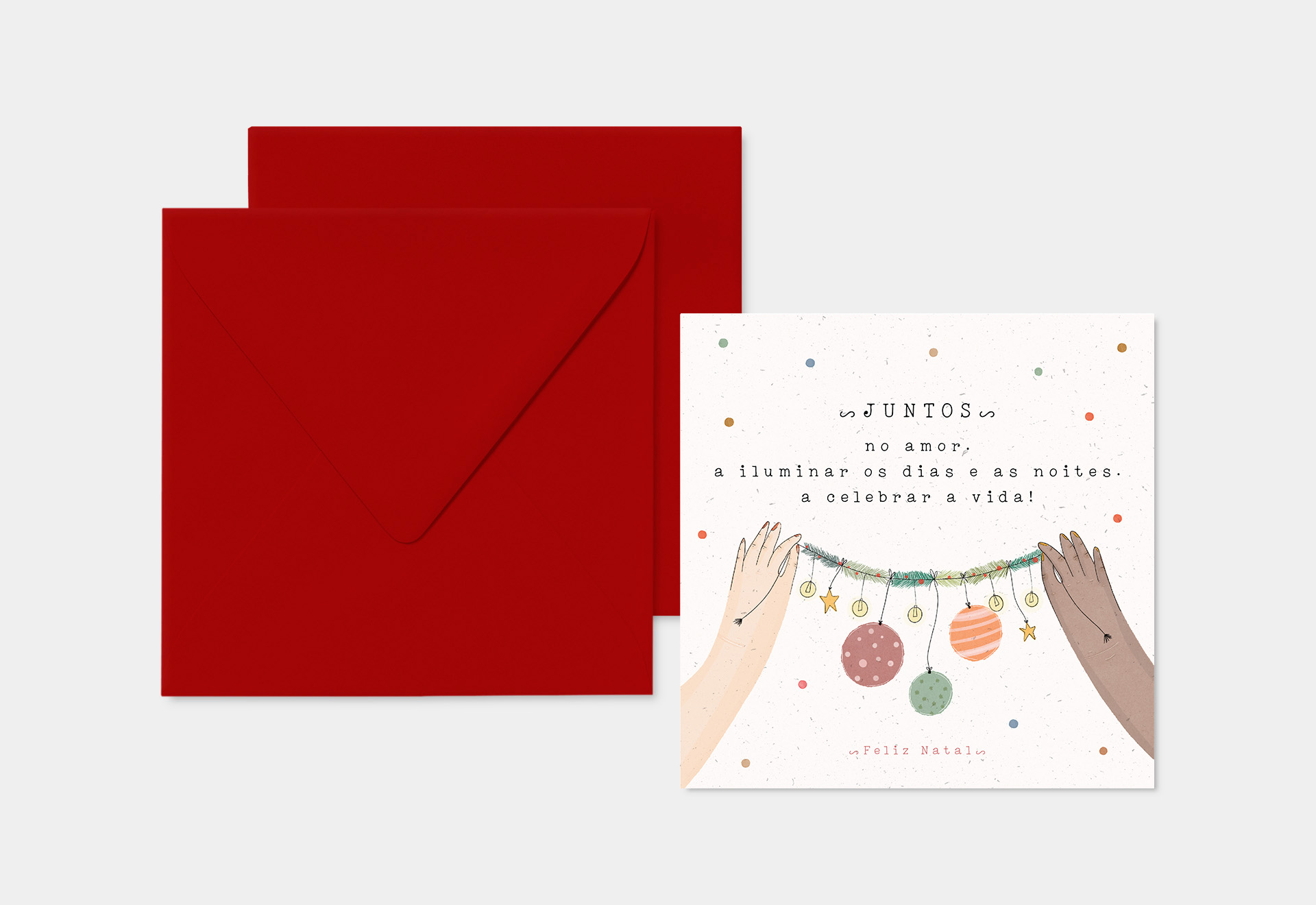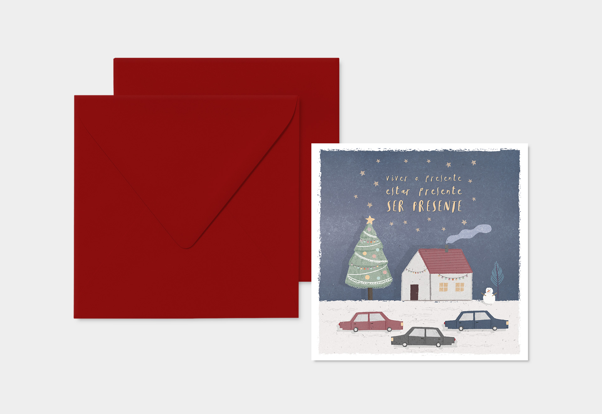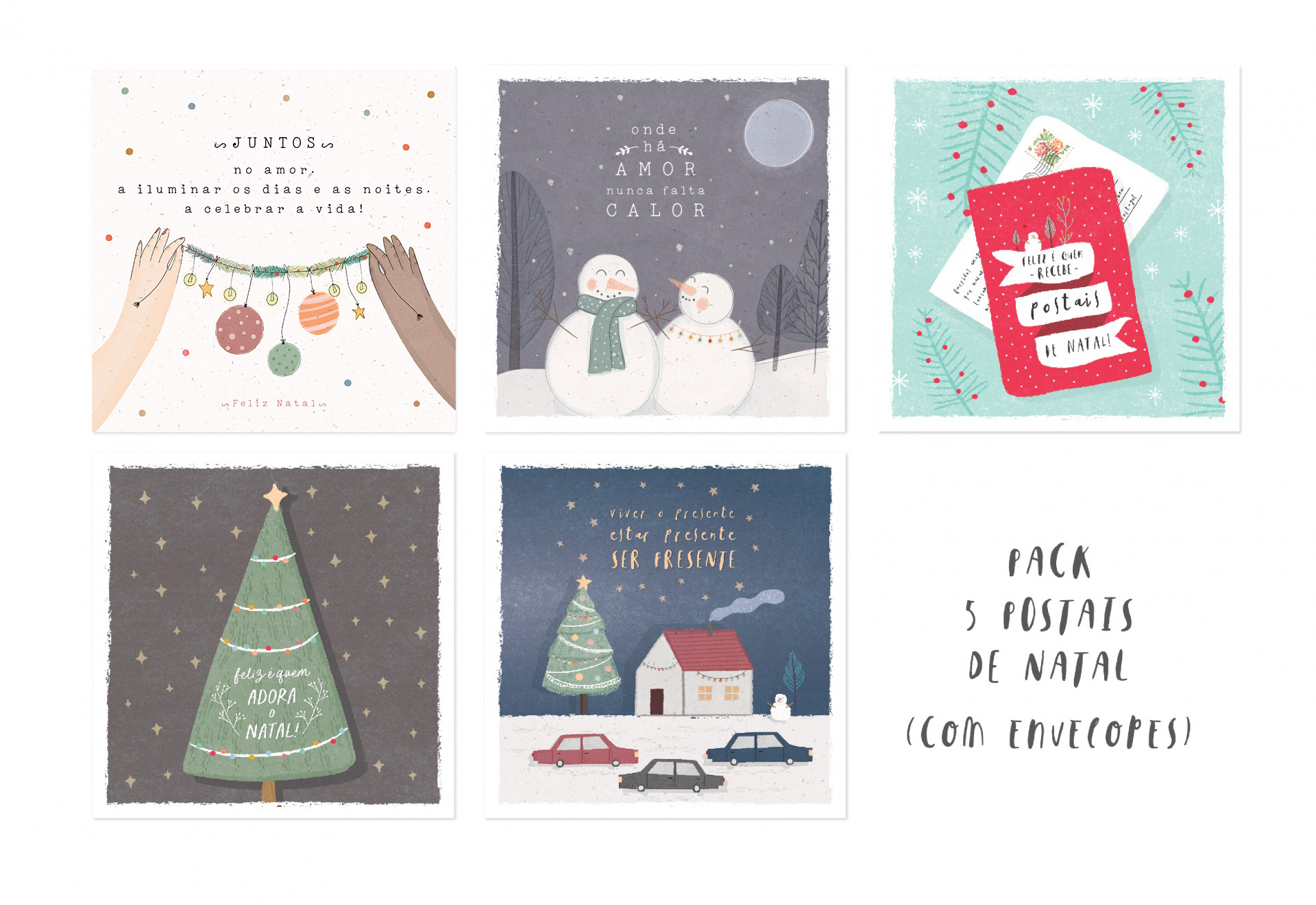 Pack 5 postais de Natal 10,00 € Desconto de %. IVA incluído. Partilhar Comprar Contactar Ilustrações originais do projecto Feliz é quem diz® Pack de 5 postais quadrados especiais de Natal, com dobra e espaço no interior para escreveres uma mensagem bonita e especial para os que mais amas. Impressos em papel reciclado 200g. Incluem envelopes quadrados vermelho Natal. Medida dos postais fechados: 15x15 cm Medida do postais abertos: 30x15 cm