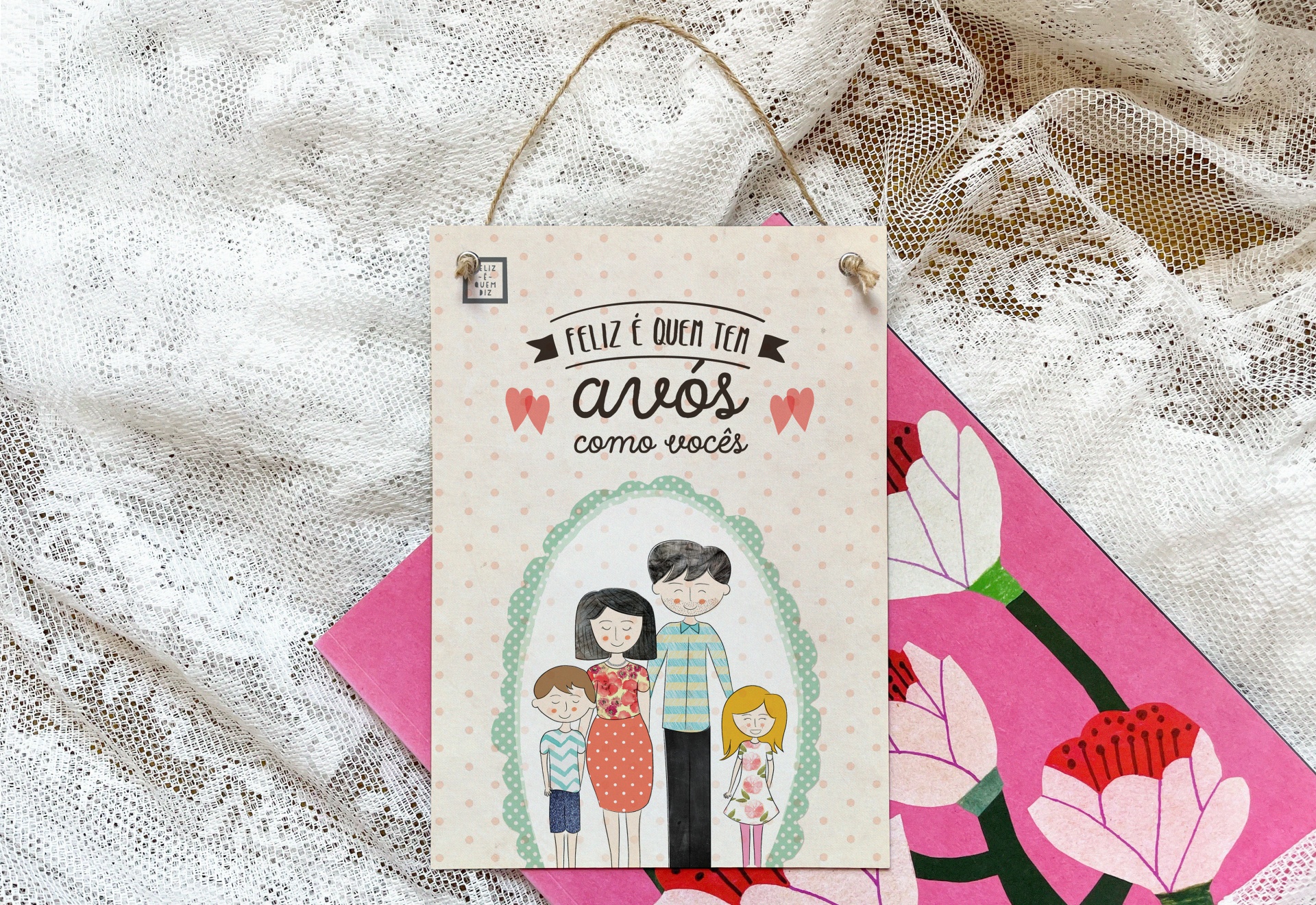 Placa pendurar . Avós 5,00 € Desconto de %. IVA incluído. Partilhar Tamanho 11x16cm 15x21cm Comprar Contactar Ilustração original do projecto Feliz é quem diz® Placa com base de cartão grosso, ilustração na frente, ilhóses e fio para pendurar. 2 medidas possíveis: 11x16cm ou 15x21cm - escolhe a opção que mais te interessa na caixa acima. Nota: a cor do fio apresentado é apenas representativa, pelo que pode variar conforme a produção.