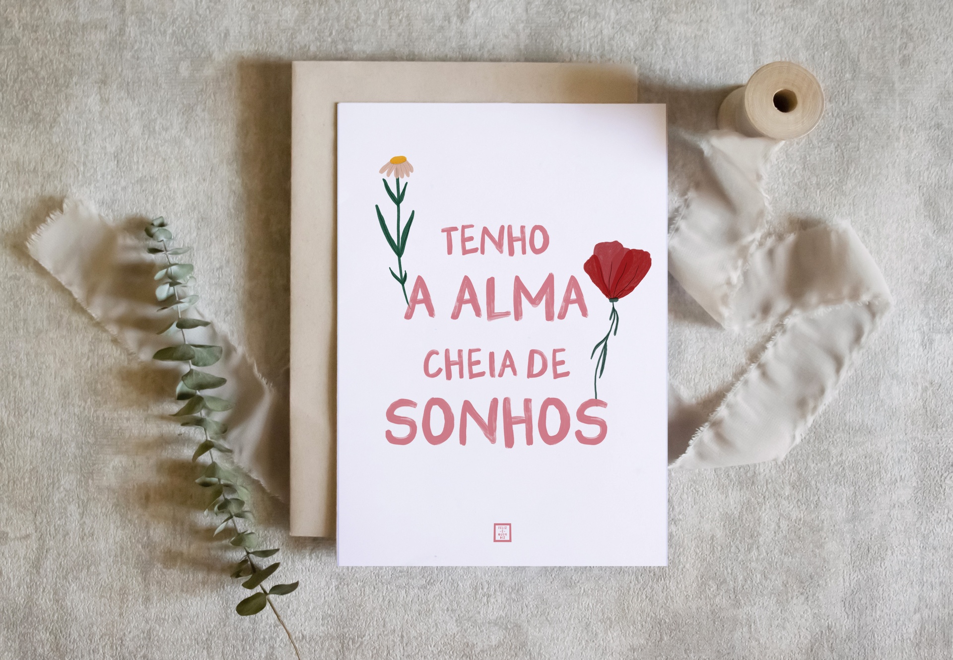 Postal . Alma sonhos 1,00 € Desconto de %. IVA incluído. Partilhar Comprar Contactar Ilustração original do projecto Feliz é quem diz® Medida do postal: 16x11cm Os postais não incluem envelope.