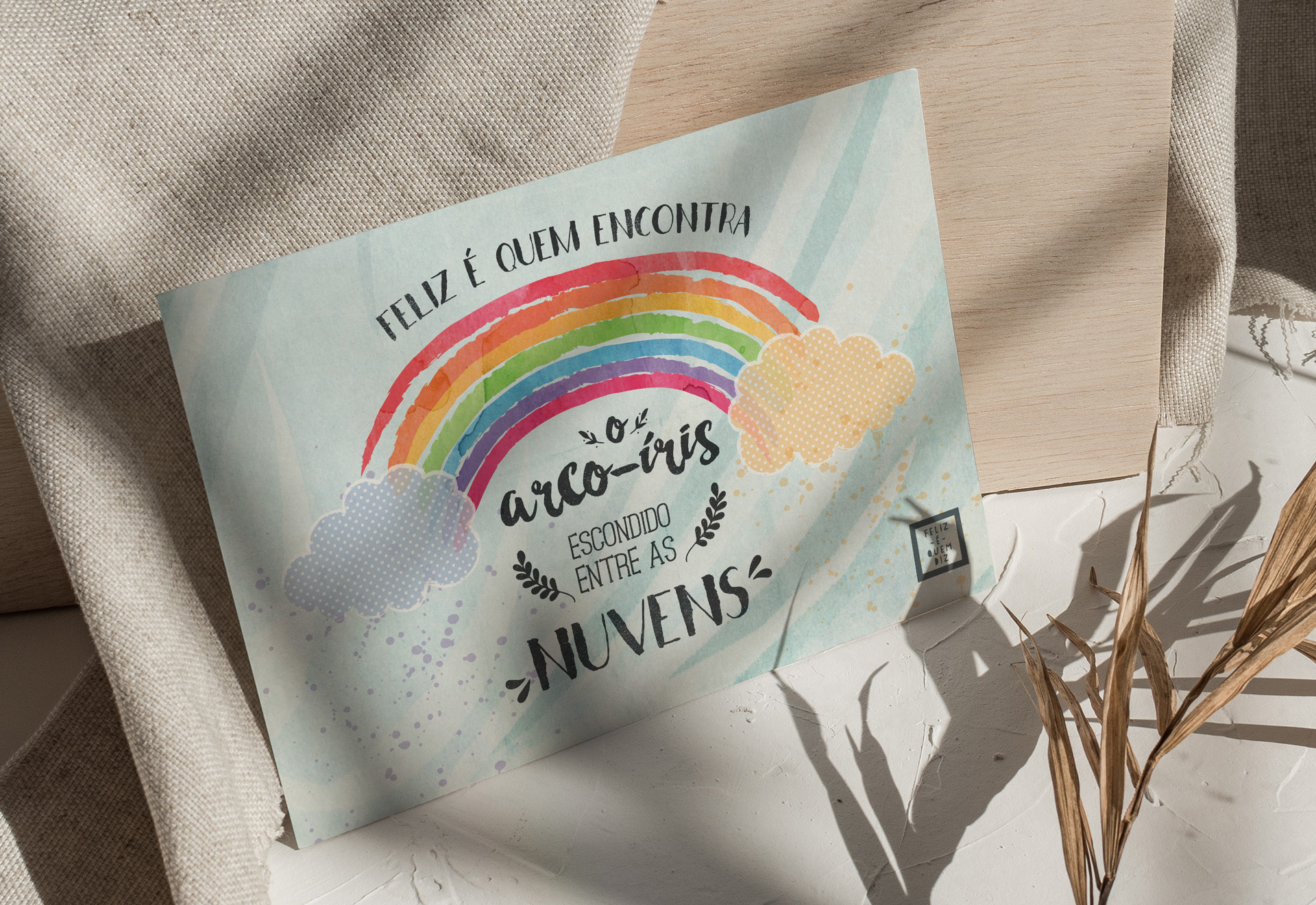 Postal . Arco-íris 1,00 € Desconto de %. IVA incluído. Partilhar Comprar Contactar Ilustração original do projecto Feliz é quem diz® Medida do postal: 16x11cm Os postais não incluem envelope.