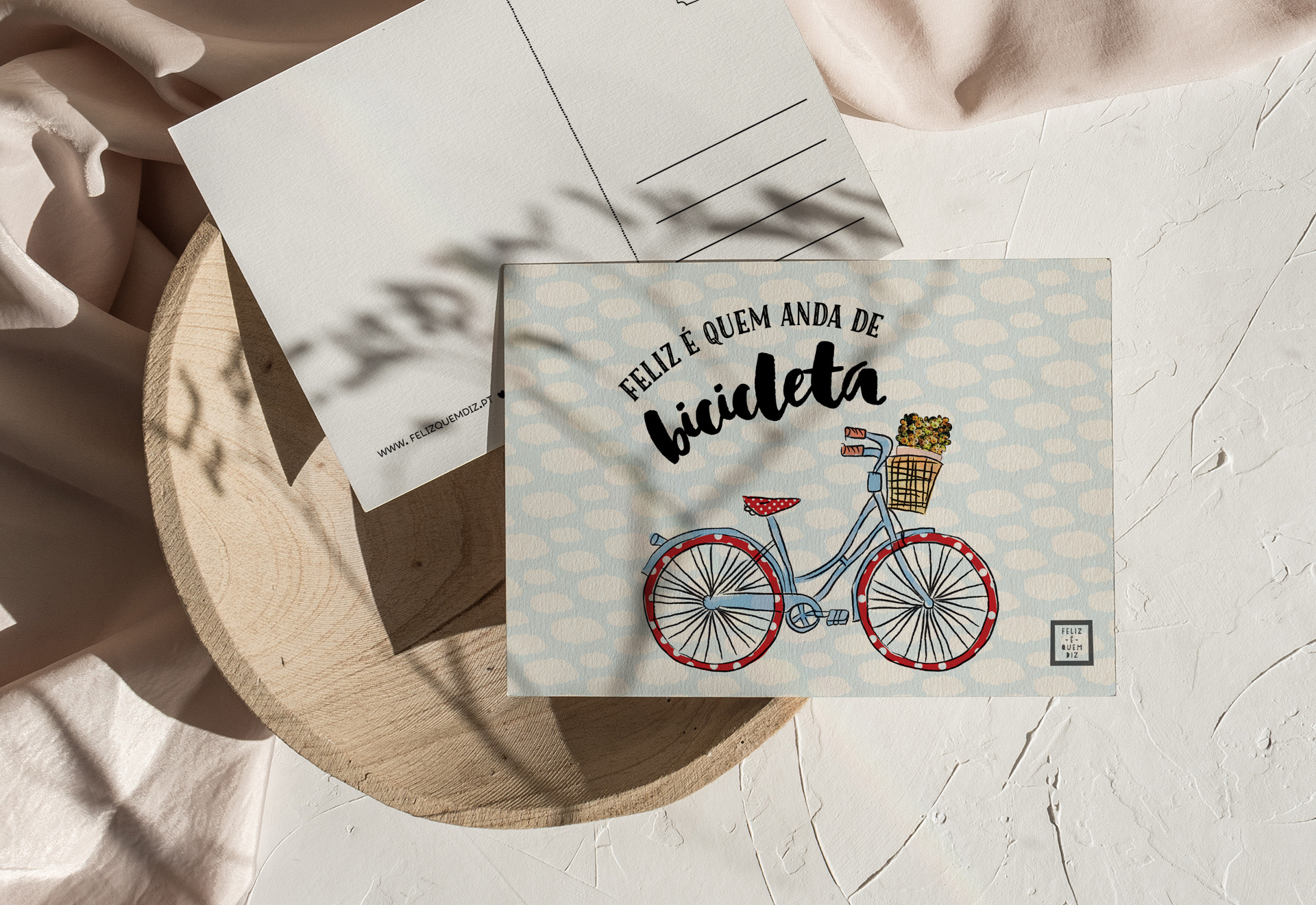 Postal . Anda de bicicleta 1,00 € Desconto de %. IVA incluído. Partilhar Comprar Contactar Ilustração original do projecto Feliz é quem diz® Medida do postal: 16x11cm Os postais não incluem envelope.