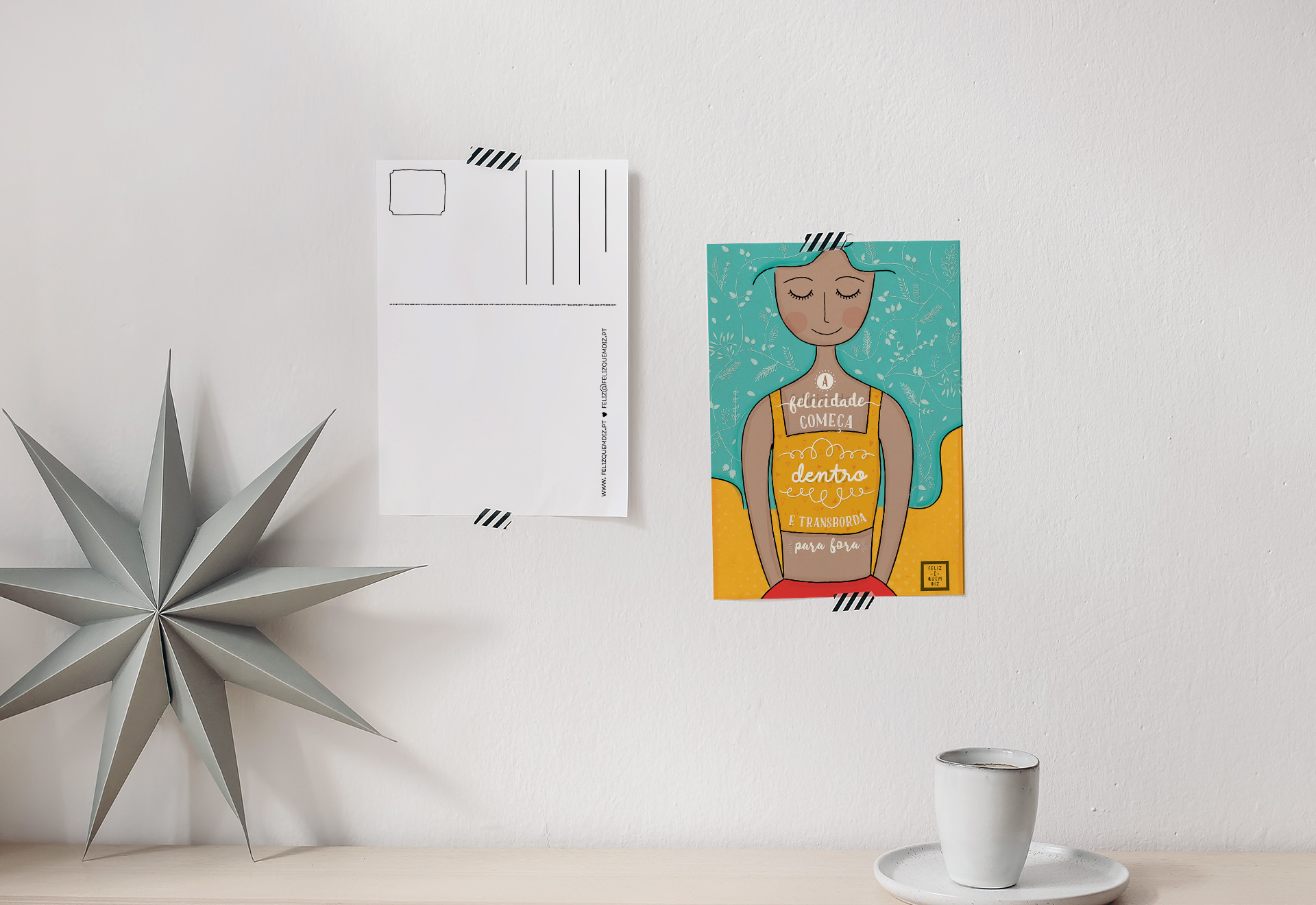 Postal . Felicidade começa dentro 1,00 € Desconto de %. IVA incluído. Partilhar Comprar Contactar Ilustração original do projecto Feliz é quem diz® Medida do postal: 16x11cm Os postais não incluem envelope.