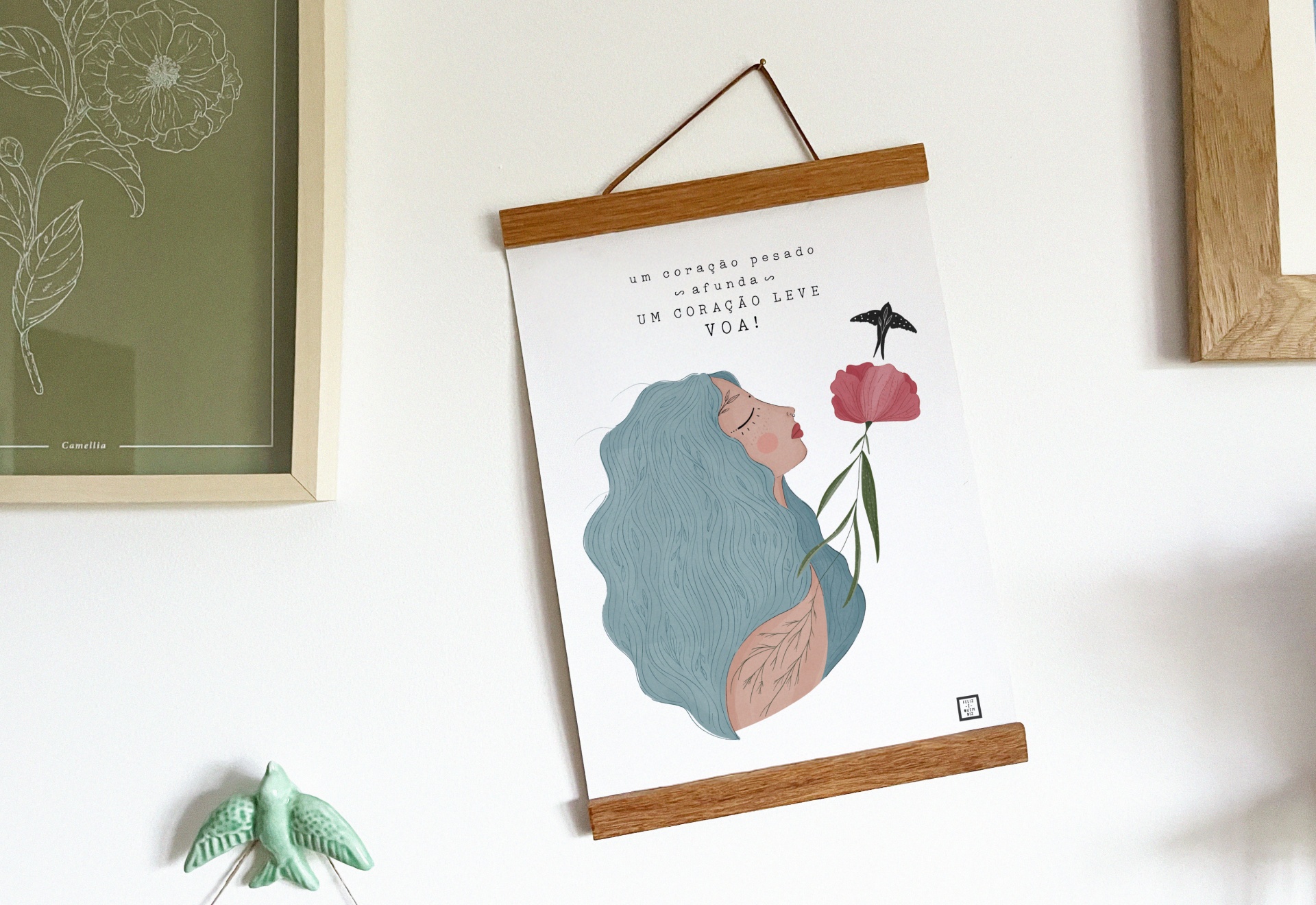 Tela . Coração leve 15,00 € Desconto de %. IVA incluído. Partilhar Comprar Contactar Tela de algodão impressa a cores com ilustração original do projecto Feliz é quem diz® - Tela de algodão 400g. - Formato aproximado A4 (21x30cm) - Suporte de madeira com fio para pendurar - Impressão digital a cores de qualidade superior
