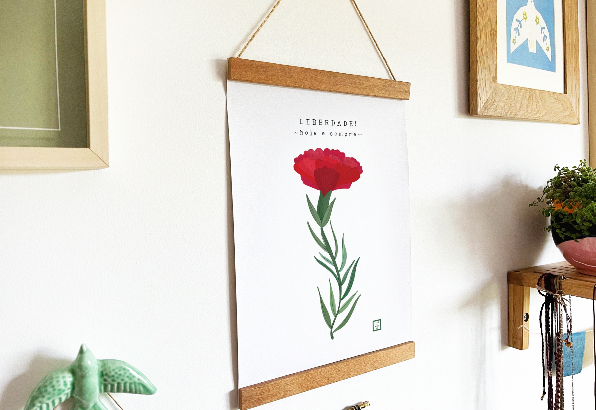 Tela . Liberdade sempre 15,00 € Desconto de %. IVA incluído. Partilhar Comprar Contactar Tela de algodão impressa a cores com ilustração original do projecto Feliz é quem diz® - Tela de algodão 400g. - Formato aproximado A4 (21x30cm) - Suporte de madeira com fio para pendurar - Impressão digital a cores de qualidade superior