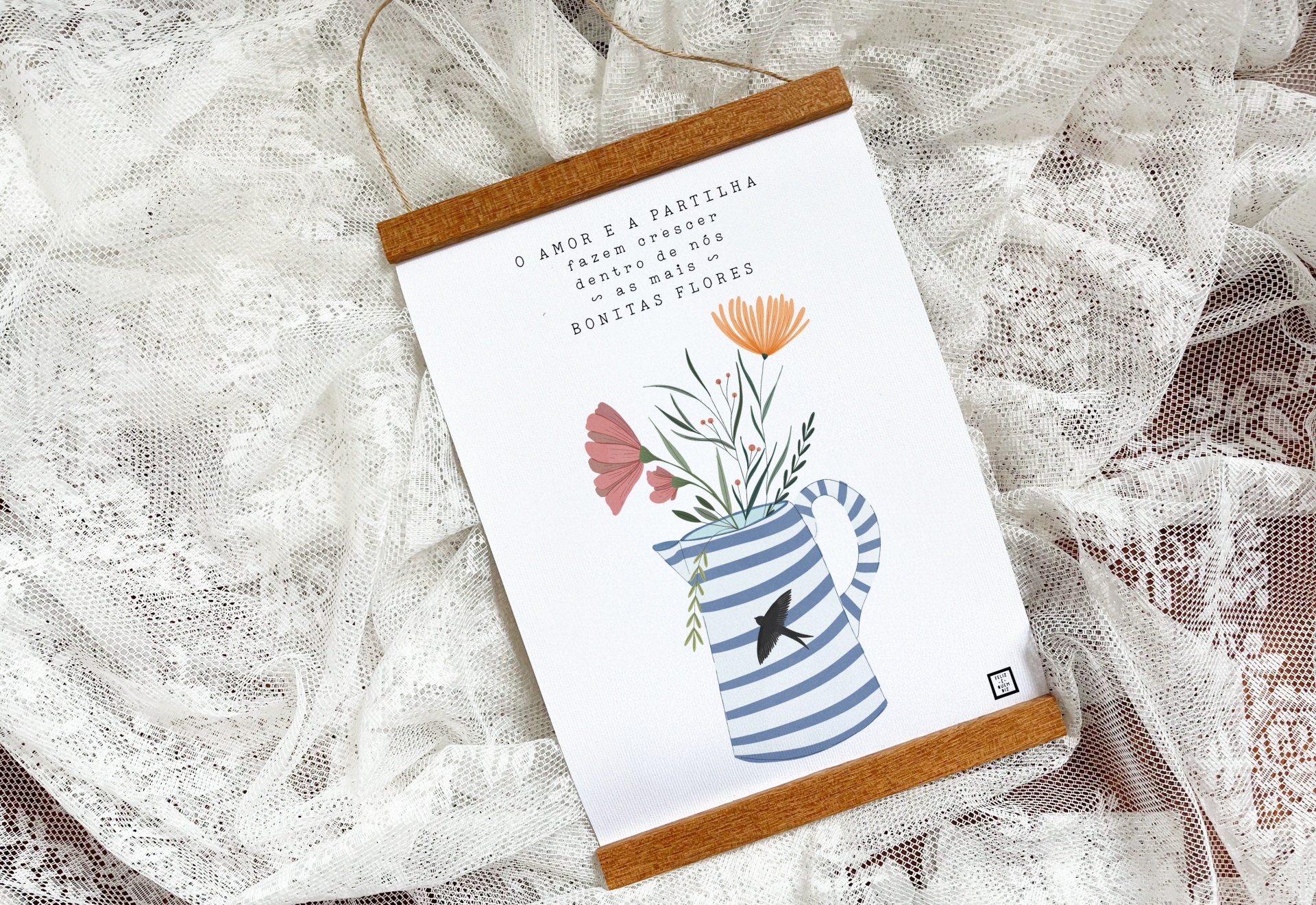 Tela . Mais bonitas flores 15,00 € Desconto de %. IVA incluído. Partilhar Comprar Contactar Tela de algodão impressa a cores com ilustração original do projecto Feliz é quem diz® - Tela de algodão 400g. - Formato aproximado A4 (21x30cm) - Suporte de madeira com fio para pendurar - Impressão digital a cores de qualidade superior